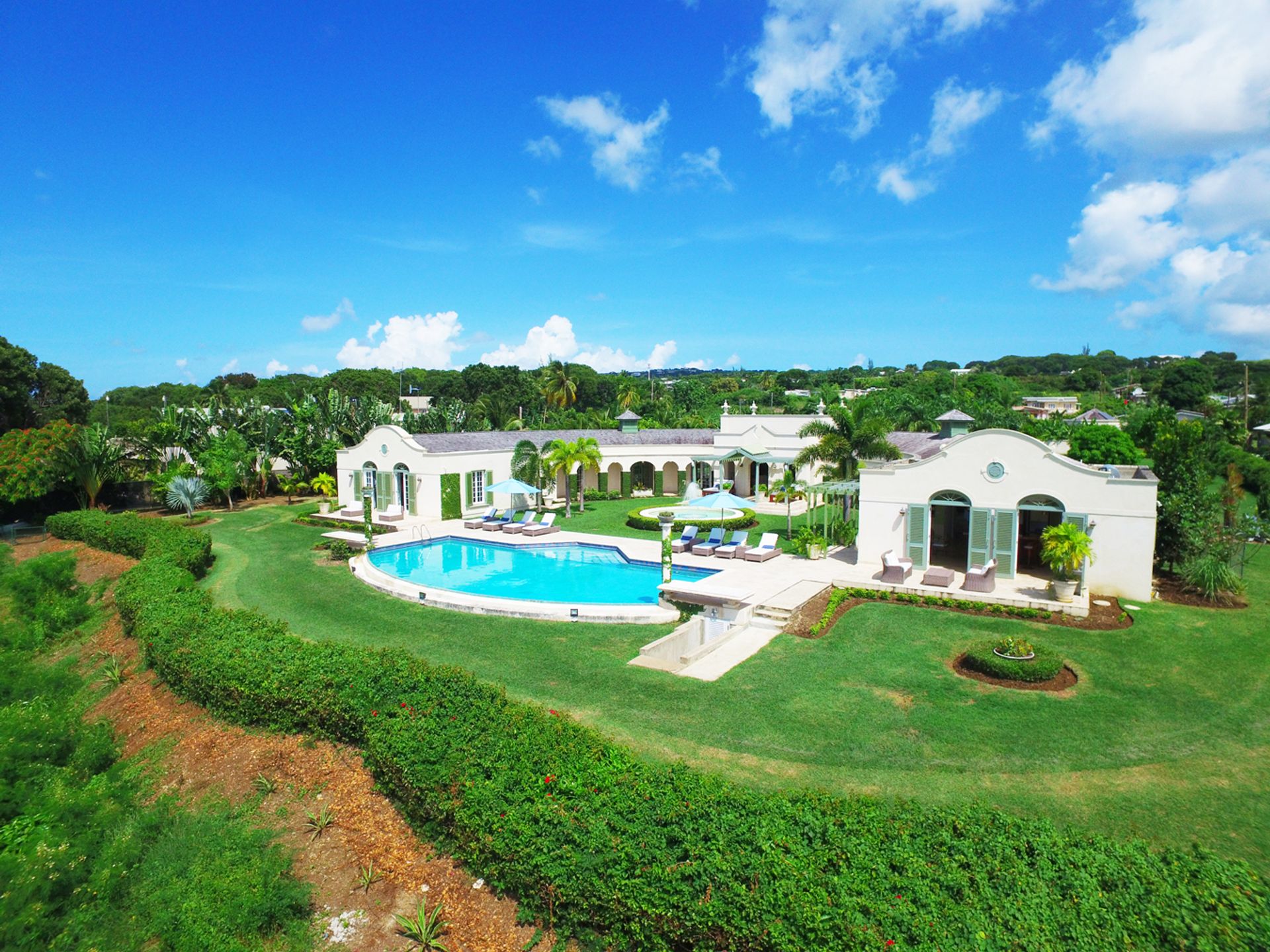 Two fully self-contained one-bedroom, one-bathroom guest lodges east of the main villa, the south lodge is ideal for visitors or staff, the north lodge requires some renovation.