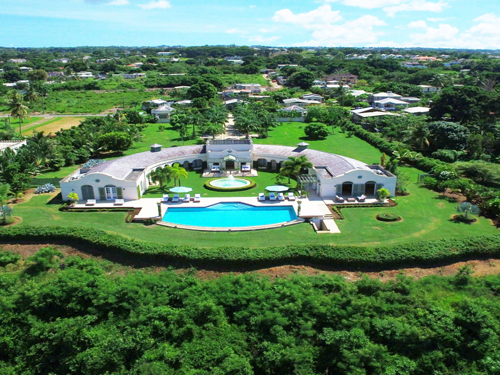 All rooms open directly onto a wide, covered terrace that embraces the villa’s crescent form, seamlessly connecting indoor elegance with outdoor beauty.