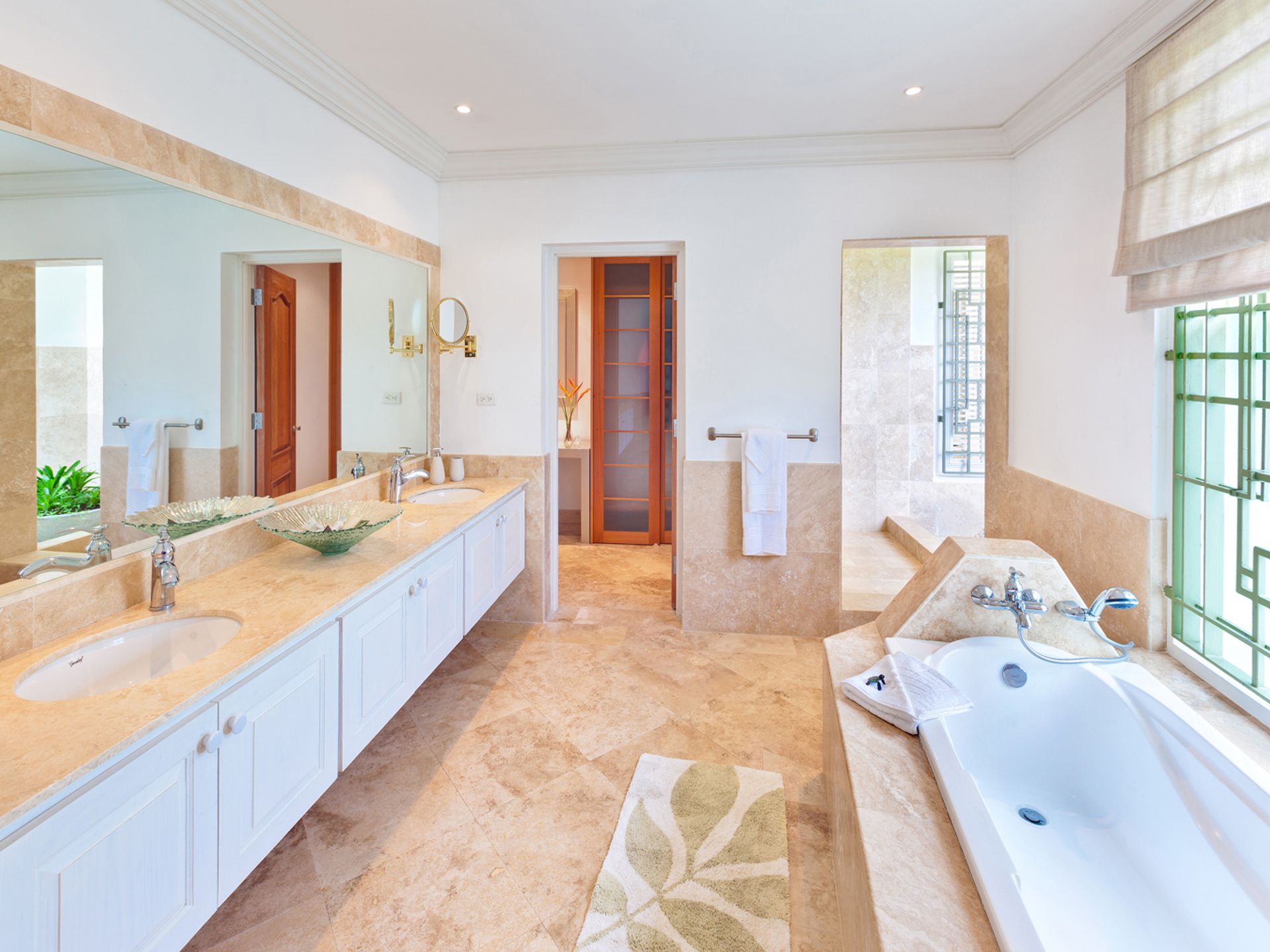Located at the northern end of the crescent, the master suite opens onto a private terrace with direct pool access and wonderful sea views. The luxurious en-suite bathroom features a generous walk-in closet, soaking tub, and a signature open-air shower.