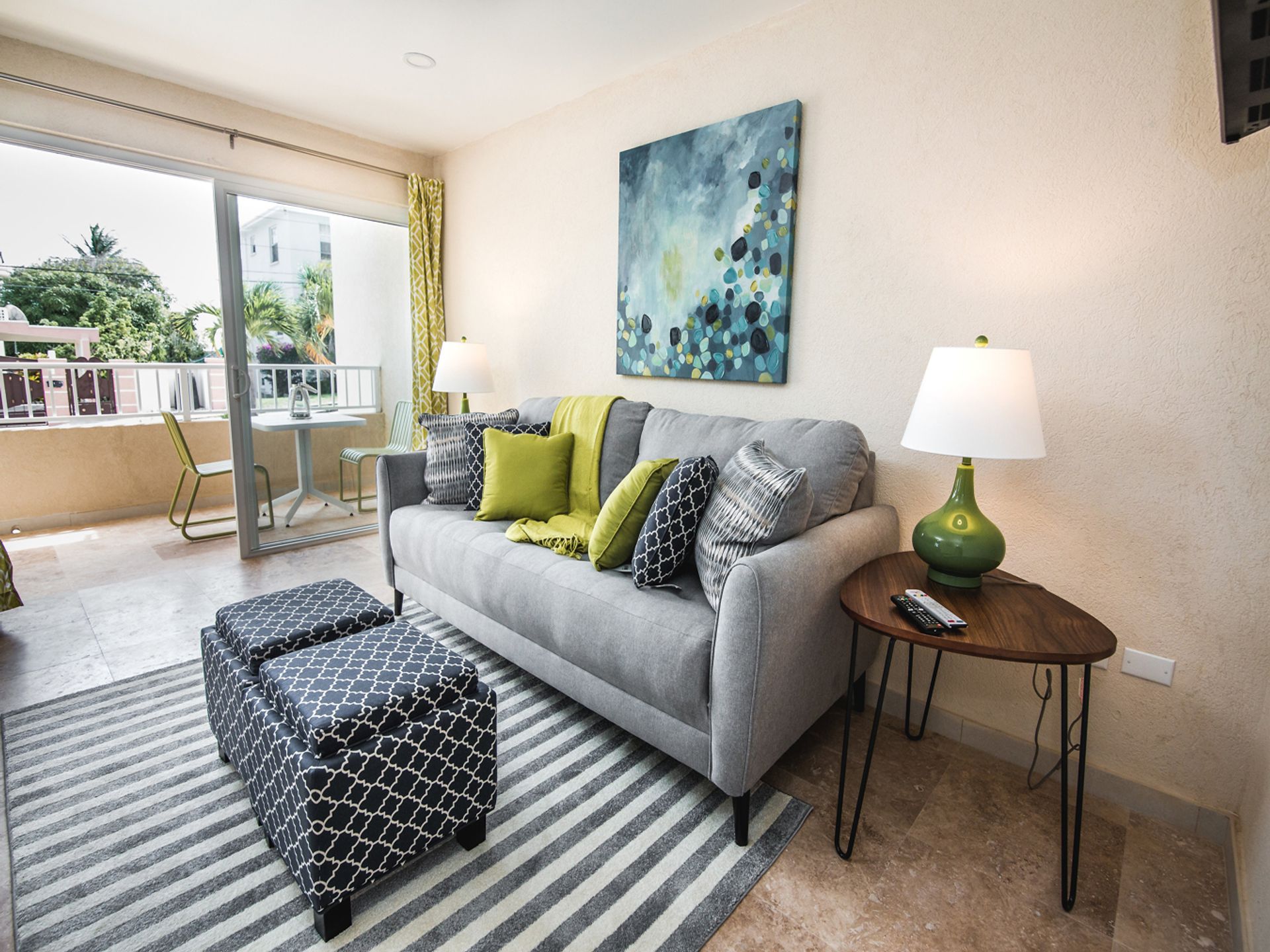 This attractive ground floor 1 bedroom apartment is conveniently located in Barbados' sought after neighborhood of Atlantic Shores. Fully furnished and recently renovated, the apartment features a fully equipped kitchen, and comfortably furnished living area which opens onto a dining terrace overlooking the neighborhood. The air-conditioned bedroom is furnished with a queen bed and there is an en suite bathroom with shower.