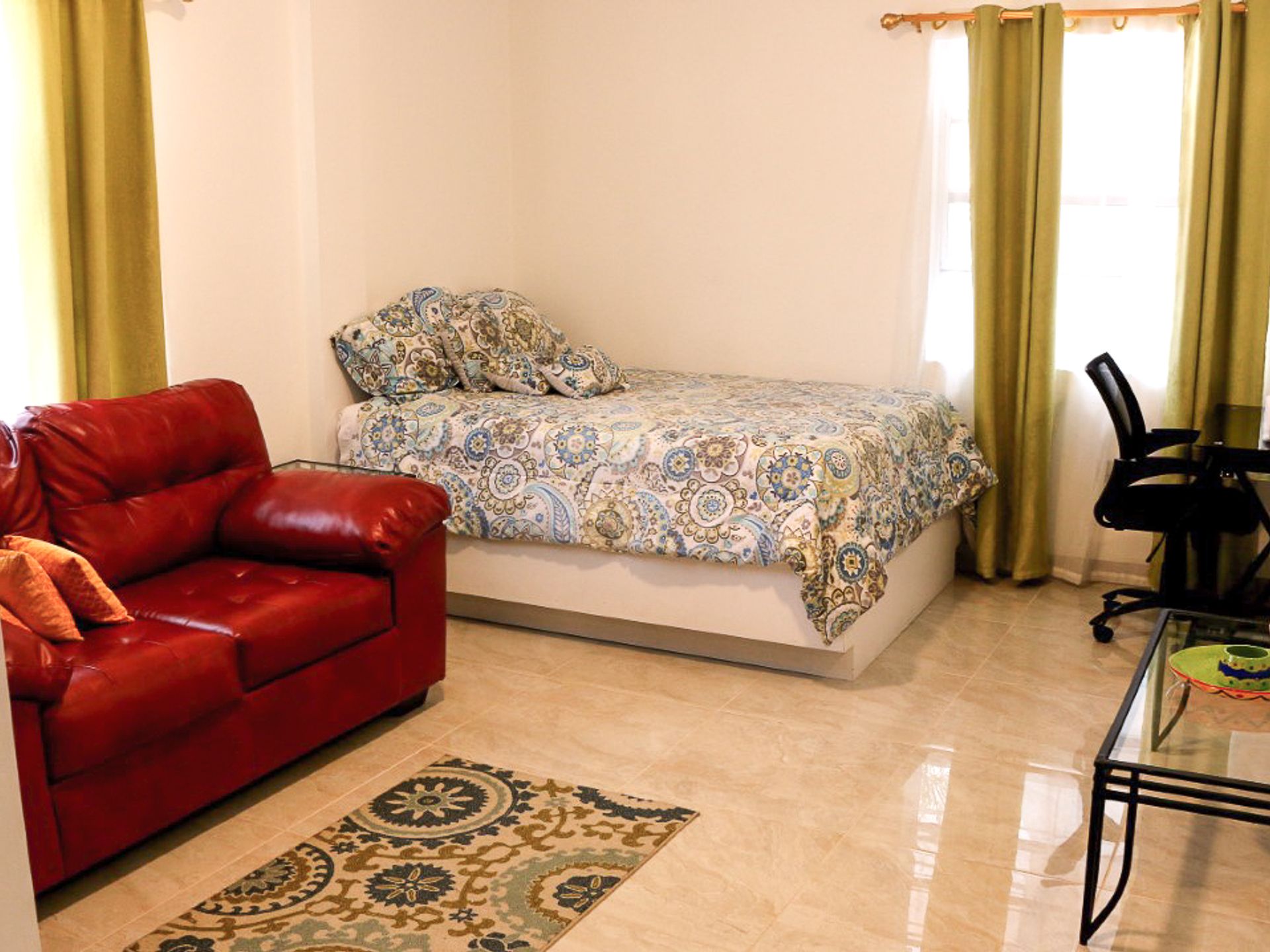 Blue Star Apartments is conveniently located on the Lance Aux Epines main road, approximately 11 minutes from the SGU Campus and 9 minutes from Grand Anse Beach. The SGU bus stop is directly in front of the property. Across the road is a Mini Mart and Cafe.