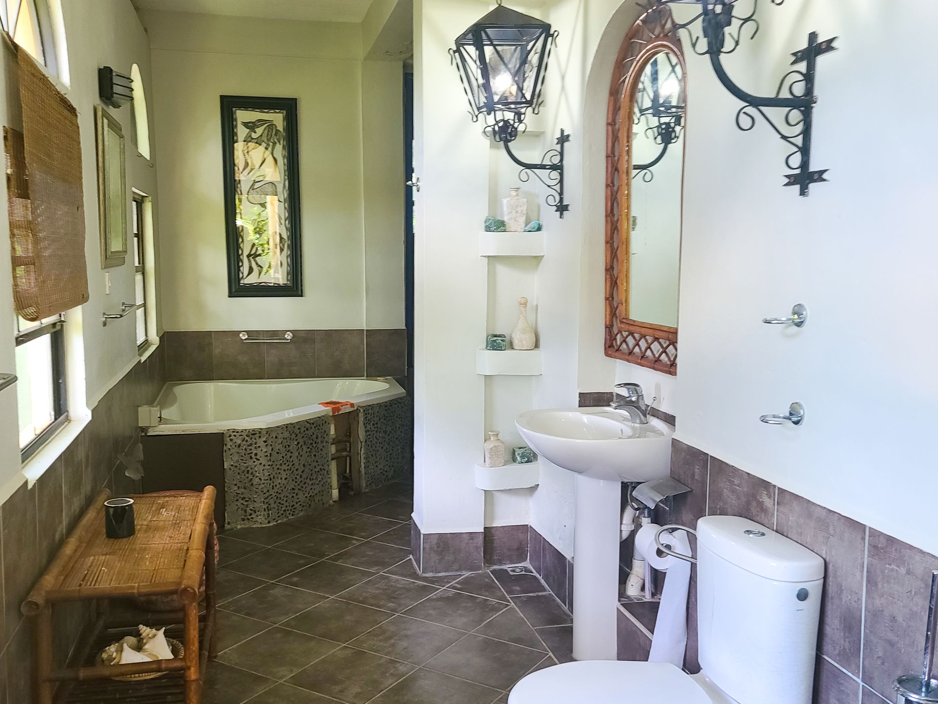 Throughout this entire property, you'll be captivated by rustic and alluring decor, highlighted by various wooden and ceramic accent pieces. Air conditioning units and ceiling fans ensure year-round comfort,
