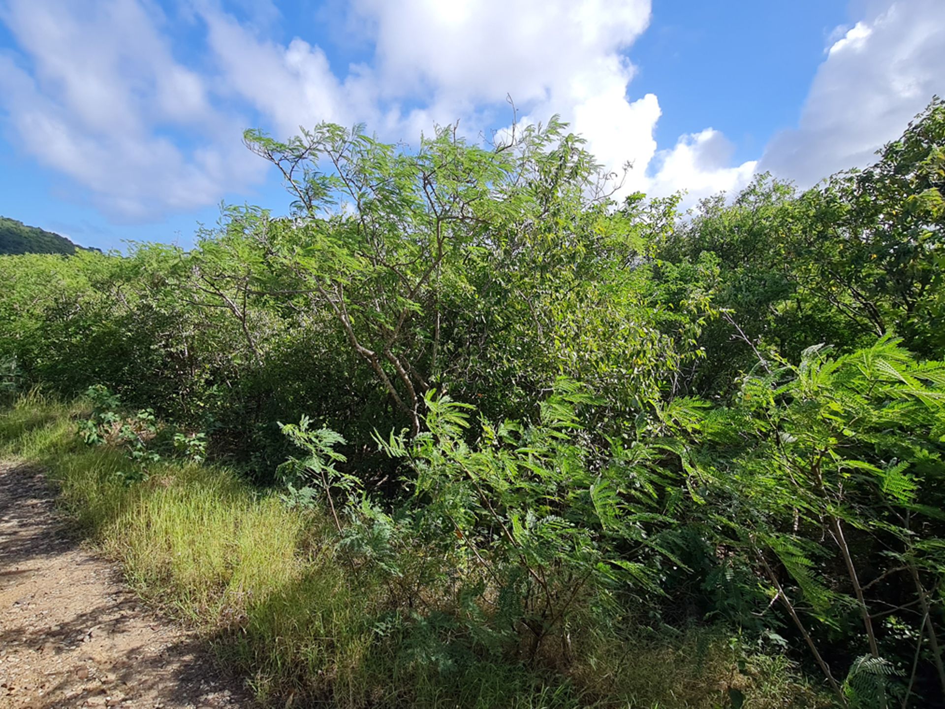 This mainly gentle to flat lot is caressed by constant Atlantic breezes which provide natural cooling year-round. The approximately 1 acre property faces east to west, with an access road running alongside in the same direction. The approximately 400 feet of road frontage on this southern boundary offers good prospects for access and development as it makes for easier surveying of the land. The access road is gravel surfaced and in fairly motorable condition, with some rough spots.
