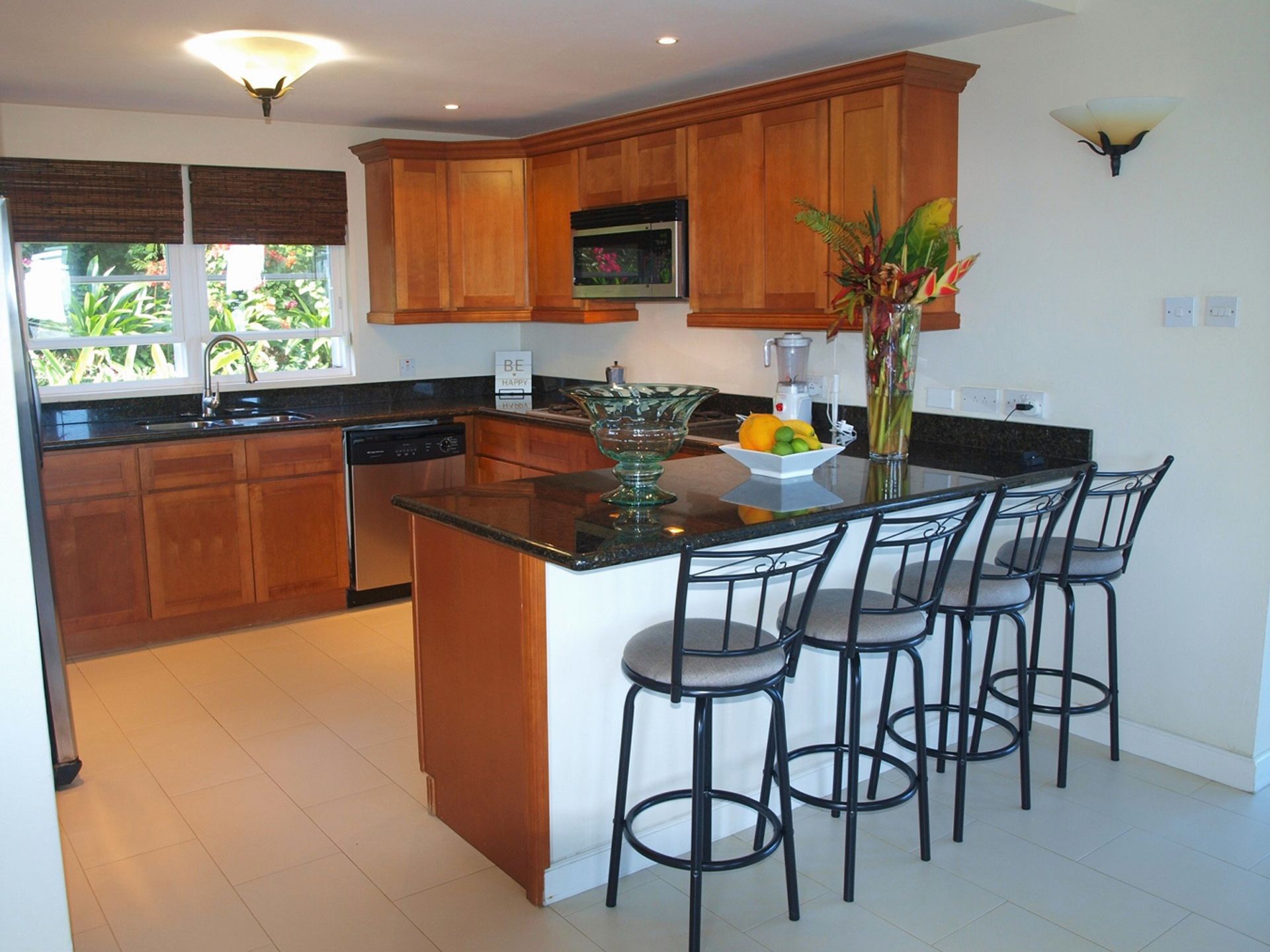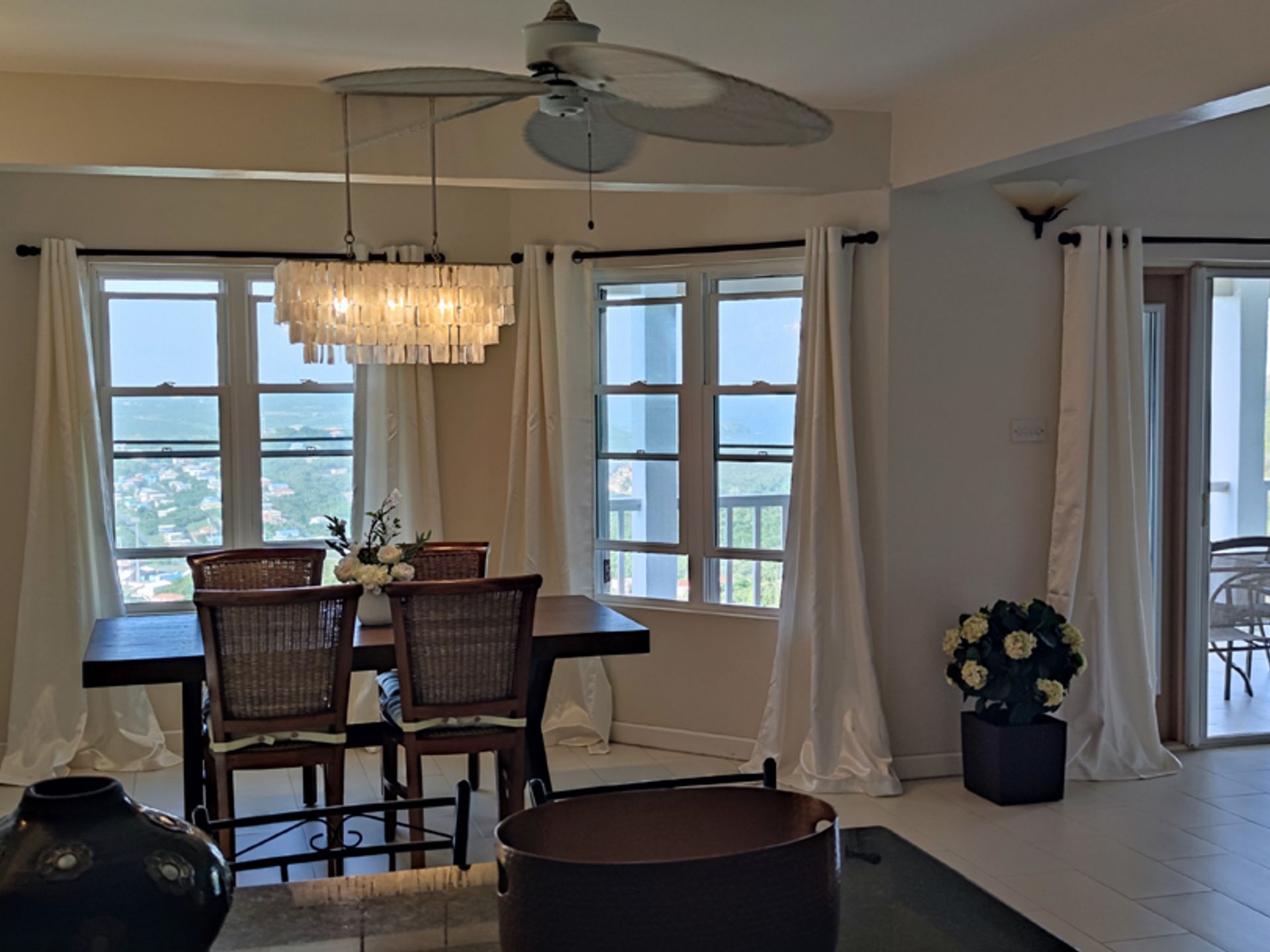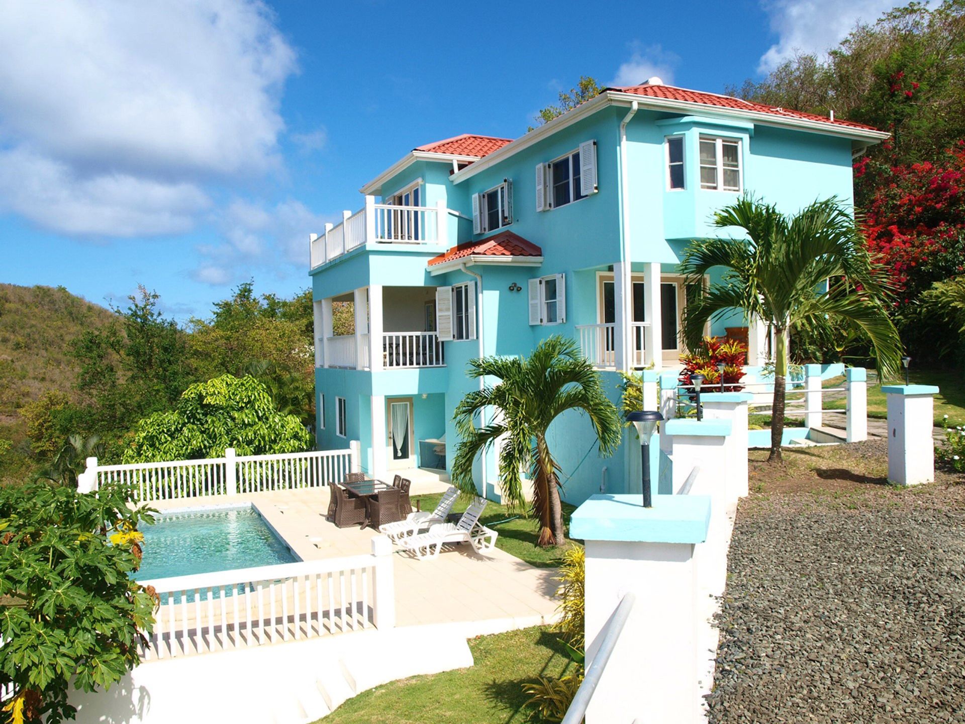 Amenities include: Gated Community, air-conditioned bedrooms, views of the Atlantic Ocean and Caribbean Sea, paved concrete road, dual voltage, fully furnished, granite counter tops, PVC windows and doors, mosquito screens, solar water heating, 2,500-gallon water cistern, and an alarm system.