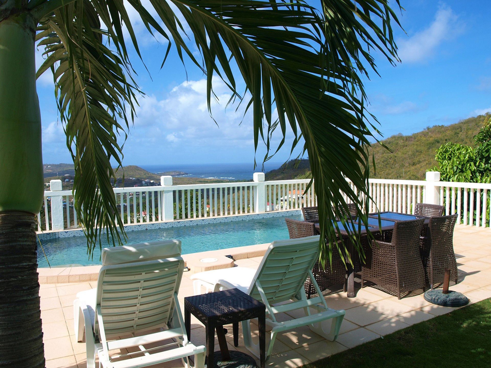 Villa Rodney is a stunning villa for sale at Mount Layau, within a 10-minute drive from Rodney Bay with all its amenities. The pool and large deck accentuate the property, as do the breathtaking views of the Caribbean Sea and the Atlantic Ocean, Pigeon Island, the Marina, lush country views, and even Martinque.