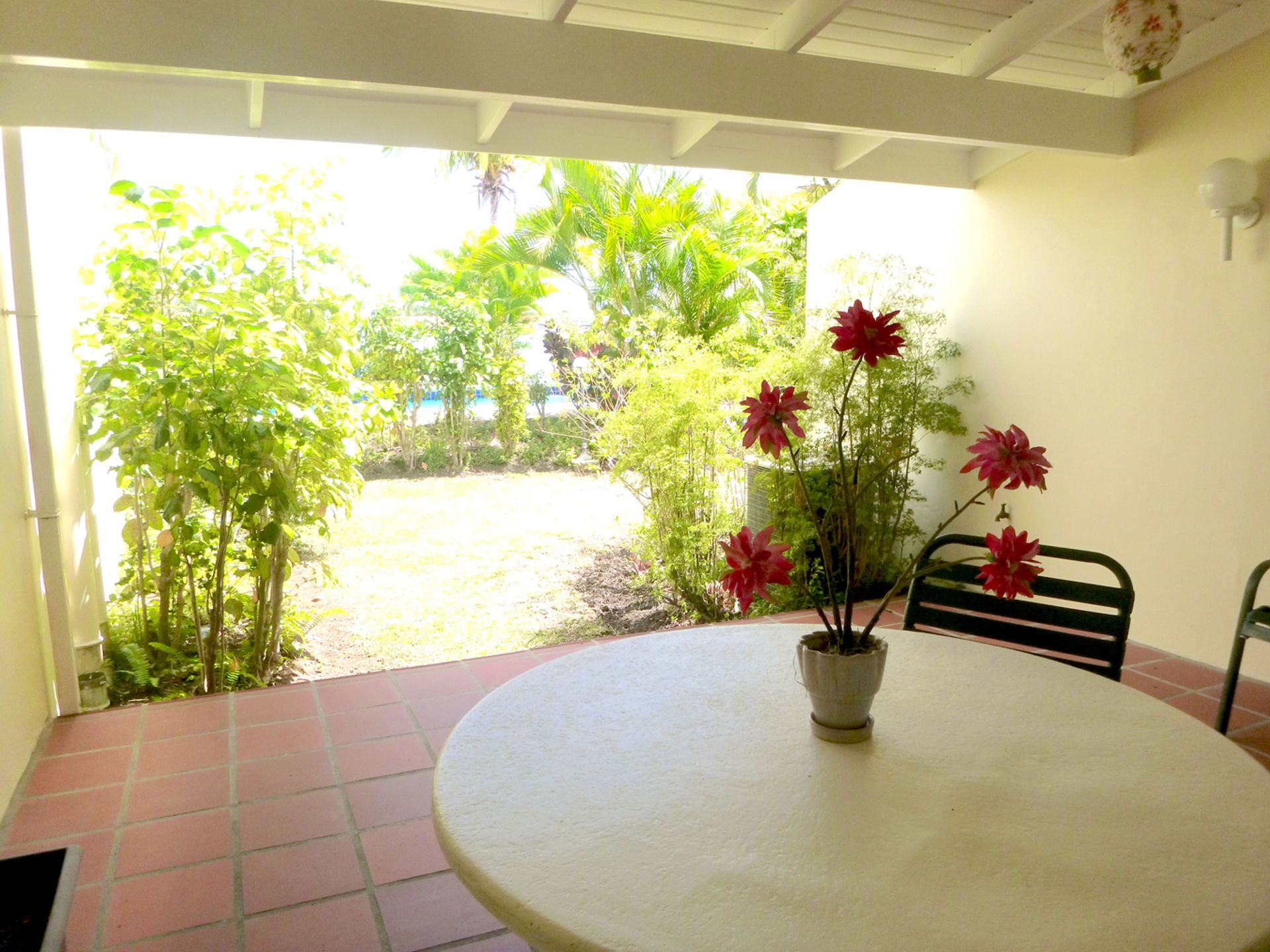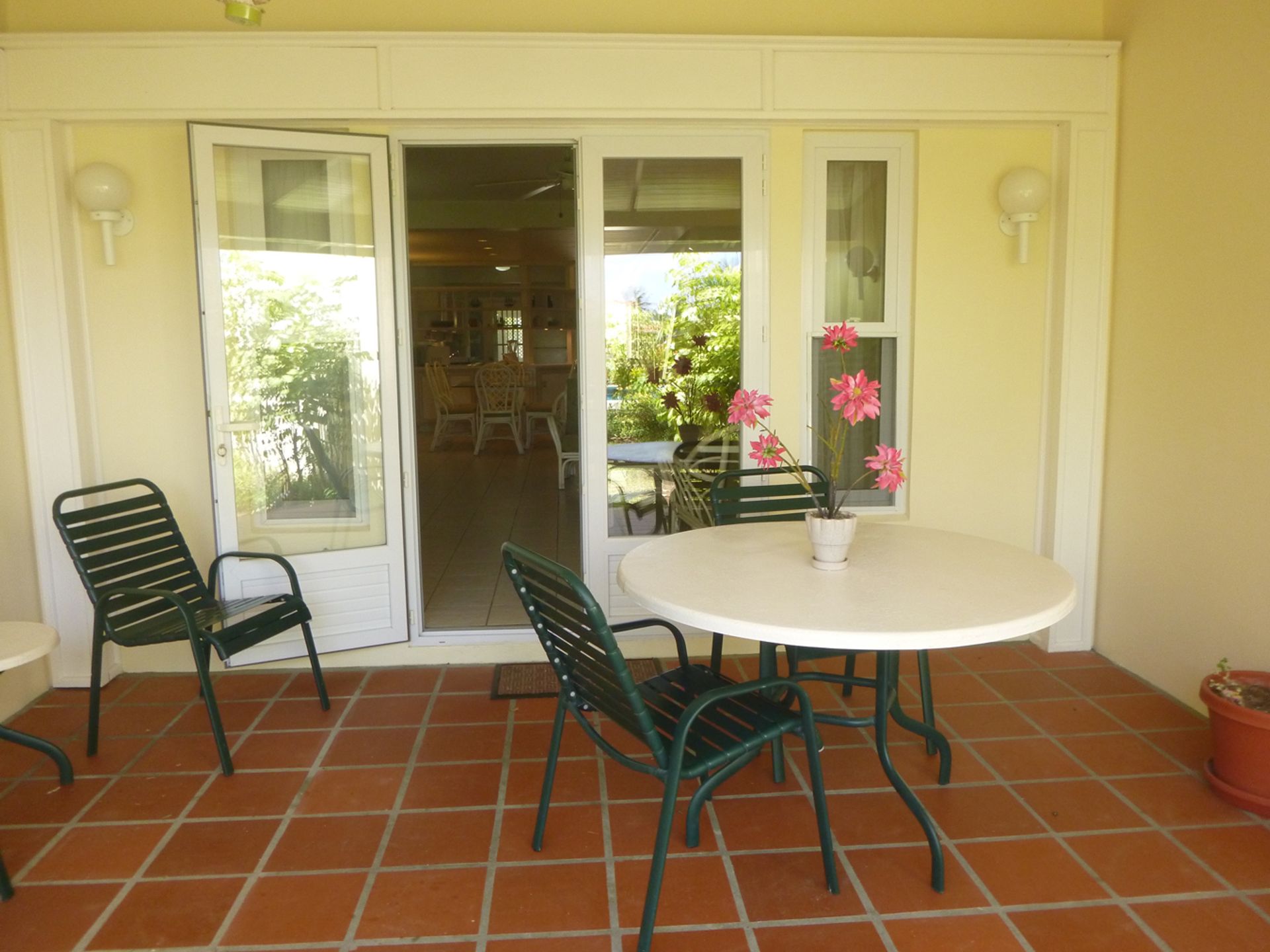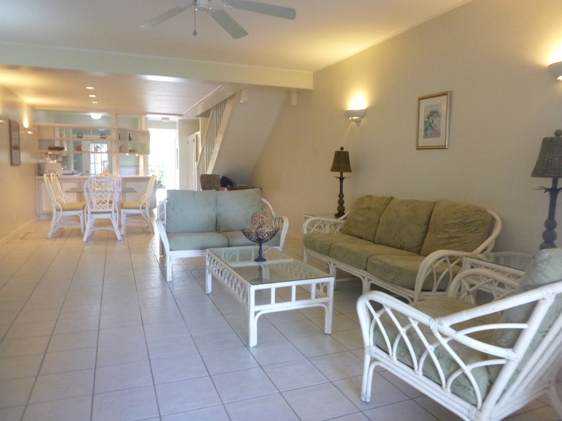 This well-appointed townhouse-style unit spans just over 1,700 square feet, inclusive of covered terraces and upper-level balconies, and is thoughtfully designed for both comfortable living and effortless entertaining. The ground floor features a spacious open-plan living and dining area that flows seamlessly onto a covered terrace, ideally positioned just steps from the communal pool—perfect for relaxing or hosting guests in a tranquil, tropical setting.