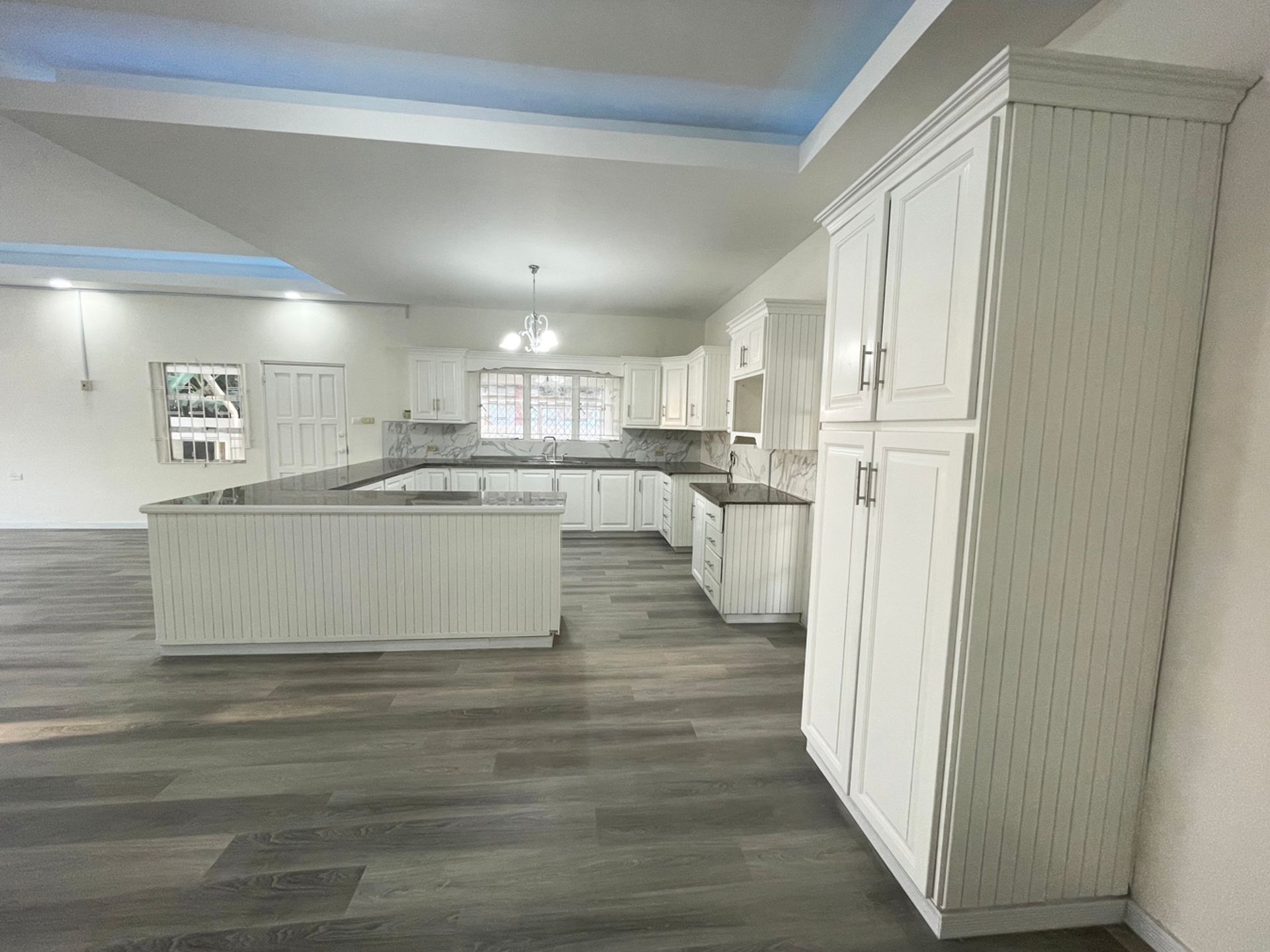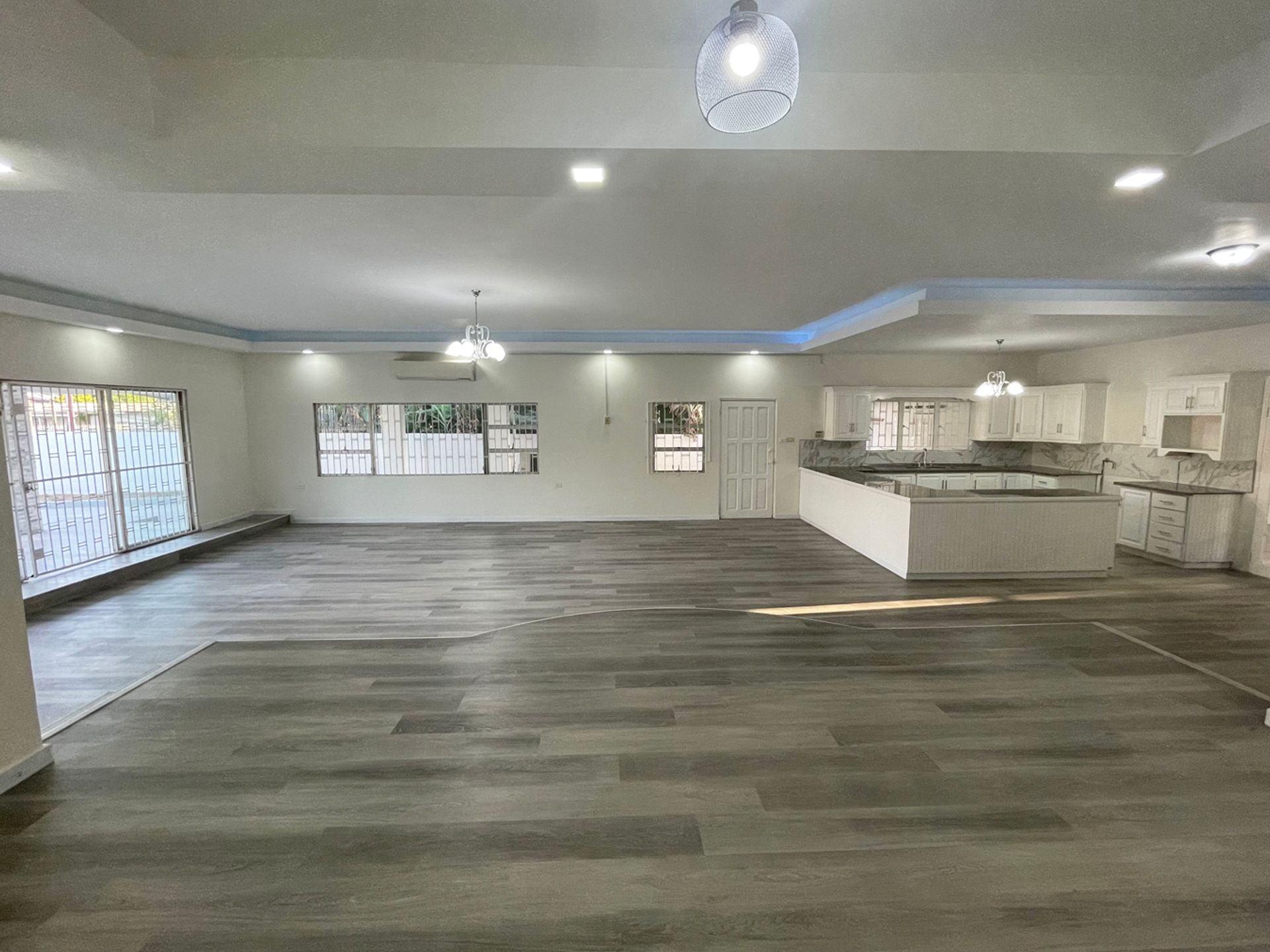 This modern single story home has 6 bedrooms with 3 full bathrooms and has been renovated and upgraded from top to bottom. From the new tiling in the driveway it leads you to the inside of the home through the glass sliding doors where you can enjoy the open floor plan with large windows throughout. This home sits on 10,000 sq ft of land and features of this 3100 sq ft home includes SPC Floorings 6.5mm in thickness, quartz countertops in the kitchen, an LED Lit trough with ambient lighting from the ceiling in the kitchen/living/dining area., textured tiles in the bathroom, AC and spacious bedrooms with built in cupboards. This home is ideal for a larger family as the main house flows into a connected annex though French doors adjacent to the kitchen that contains another living area, kitchenette,2 bedrooms and full bathroom. The Master Bedroom is en suite with a walk in closet and there is also a dedicated storage room with lots of built in cupboards. The garage can comfortably fit 4 vehicles and the gate is electronic. There is lots of space in the backyard which can accommodate a swimming pool if desired. The home is located in a very secure safe neighbourhood close to all major amenities.