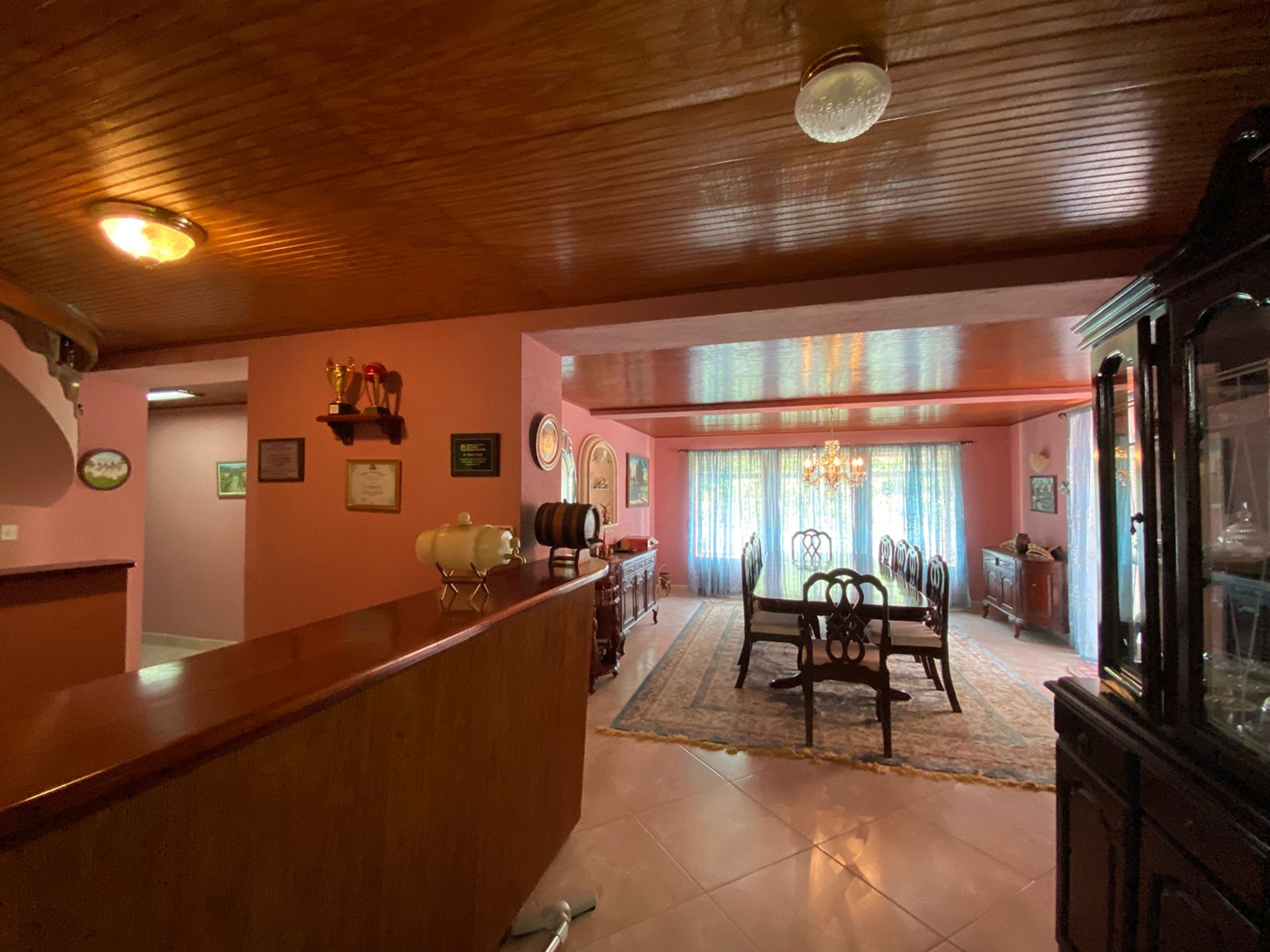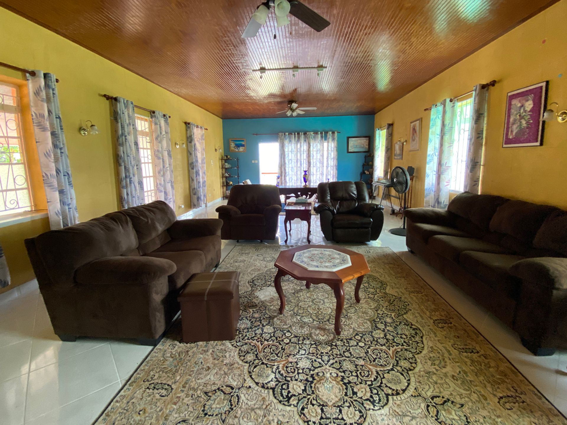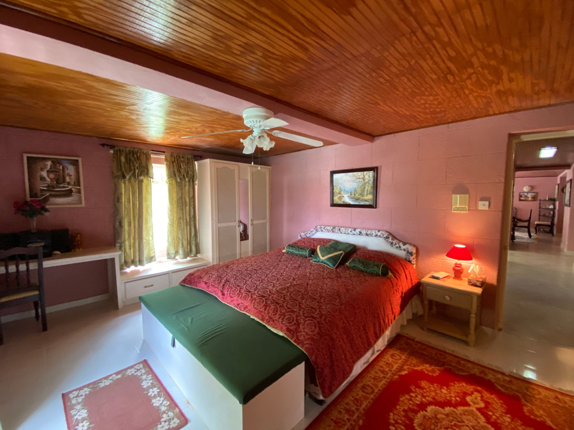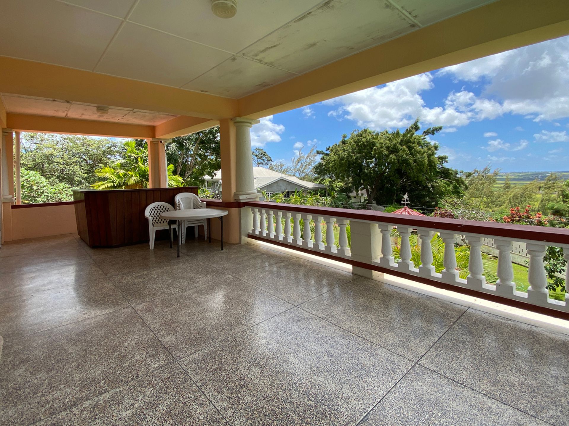 Kailas is a large, 5-bedroom home with a cottage, on an acre of land, situated in Brighton, St. George. This home was once two apartments, and was converted to a single family home. It can easily be changed back if so desired. Upon entry, there is an open foyer, with the kitchen on one side and the other leads to the dining area with a built in bar, the living room, a powder room and an en suite bedroom. Once you walk through the foyer, there is an area which can be used for multi purposes like a TV room or hobby room. Onwards is a one bedroom suite, with a small living area. On the upper floor, there are three bedrooms and three bathrooms, a spacious office, and an even larger living room. From this floor, the view of the valley are beautiful, and entertaining on this level is expected, with another bar on the patio, and great amounts of covered outdoor space. The cottage is currently used as a gym, but would make a great Mother-in-law suite. There are so many features to this home, that it must be seen to be appreciated.